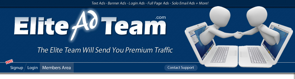 EliteAdTeam.com is not a multi-level marketing scheme or a get-rich-quick program, we are purely an advertising platform. We don't require you to have a website or sell any product to use our service. We do not require you to refer anyone to our site to use our service. You won't get rich by using our internet advertising program. This website uses cookies. Being a member and/or continued use of this website indicates that you accept our cookies policy. Thank you, we very much appreciate your support and being a member on our site! Privacy Center | Terms and Conditions | Earnings Disclaimer | Spam Policy | Privacy Policy © Copyright 2019 - EliteAdTeam.com ![]() |